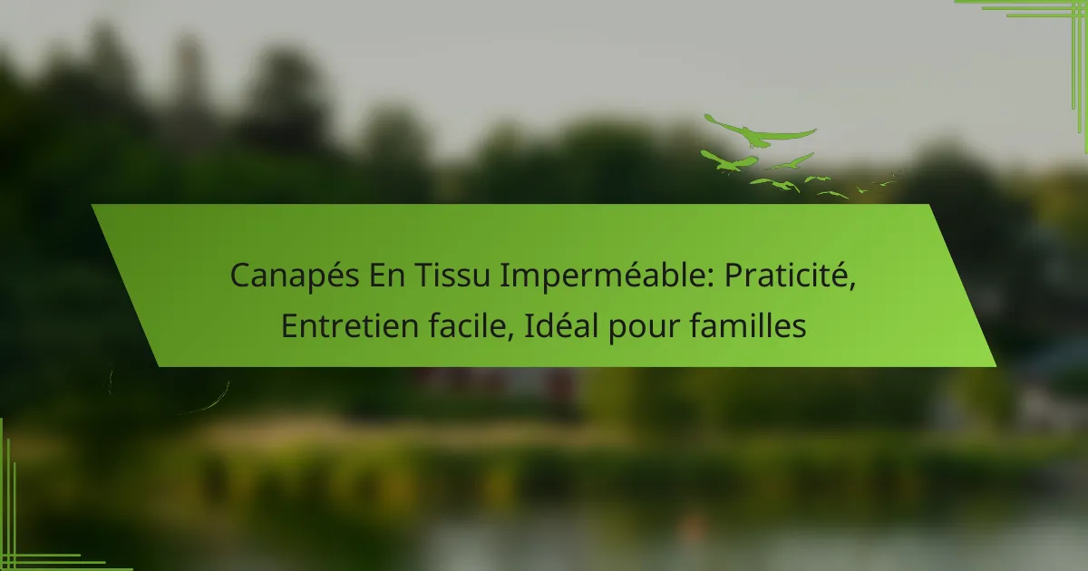 Pour choisir un canapé en tissu imperméable, il est essentiel de considérer la qualité du tissu, les types disponibles, ainsi que les finitions. Ces éléments garantissent non seulement la durabilité du canapé, mais aussi sa praticité pour les familles.